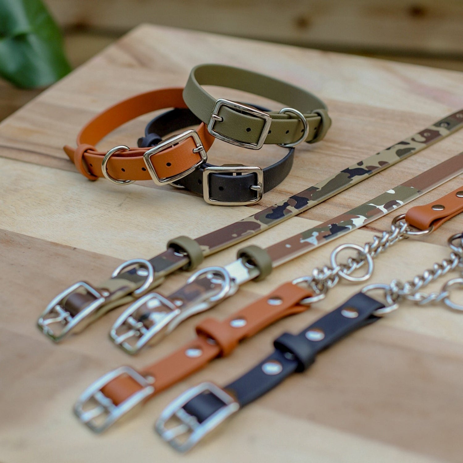Biothane is the most durable material on the market for leashes and collars. The material is a webbing with a polymer coating that feels like worn in leather.